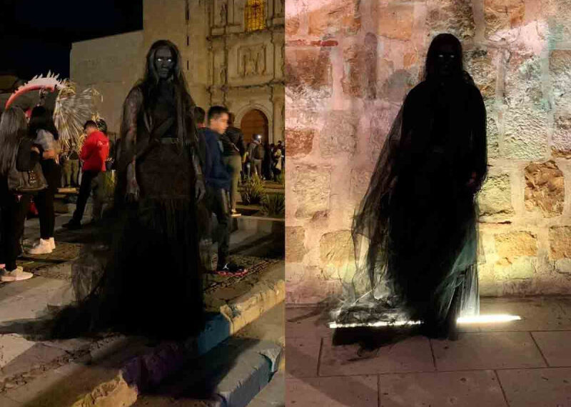 Así, es posible ver en las calles desde catrinas, espectros y fantasmas, hasta calaveritas de azúcar e incluso niños disfrazados de pan de muerto, sin embargo, en Oaxaca una espeluznante mujer sombra fue vista recociendo los altares de muerto llamando la atención de quienes paseaban por el lugar.