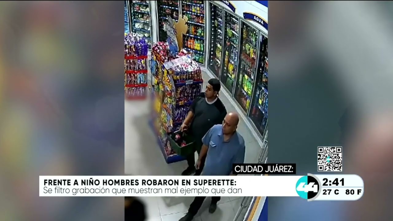 Frente a niño hombres roban en Superette