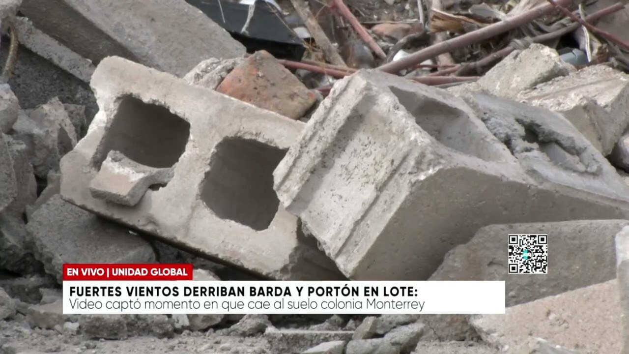 Fuertes vientos derriban barda y portón en lote