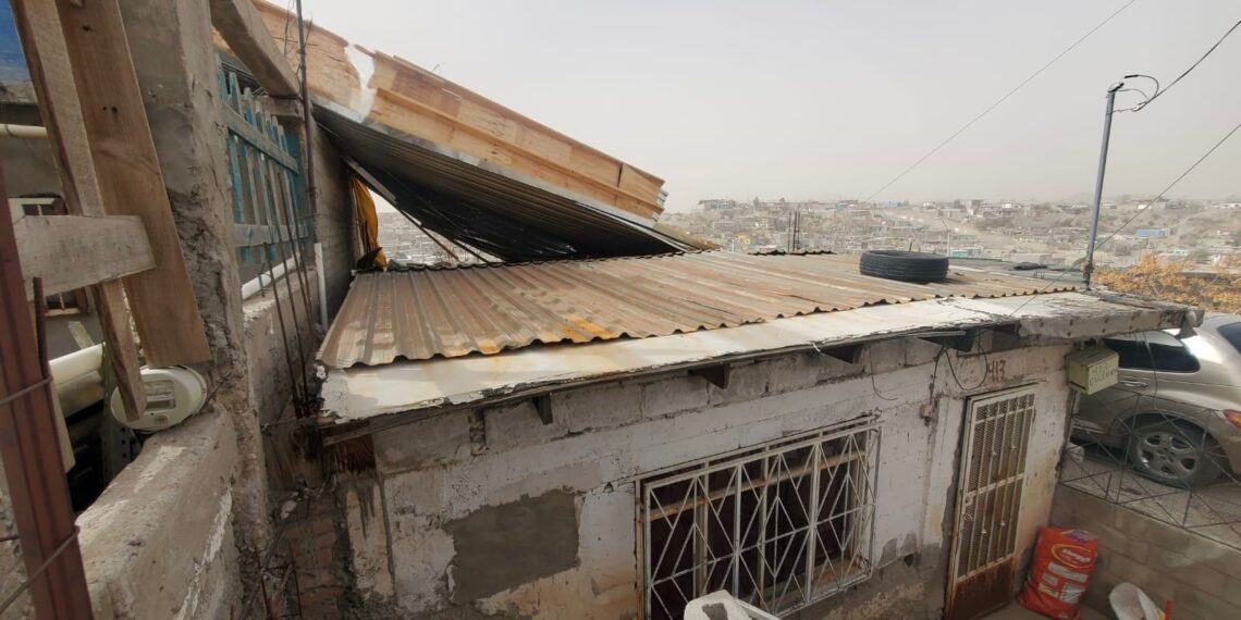 Ciudad Juárez, Chih.- La Dirección General de Protección Civil informó que, como consecuencia de los fuertes vientos que afectan a Ciudad Juárez, se atendió el derrumbe de un techo proveniente del segundo piso de una vivienda en la colonia Puerto La Paz.
