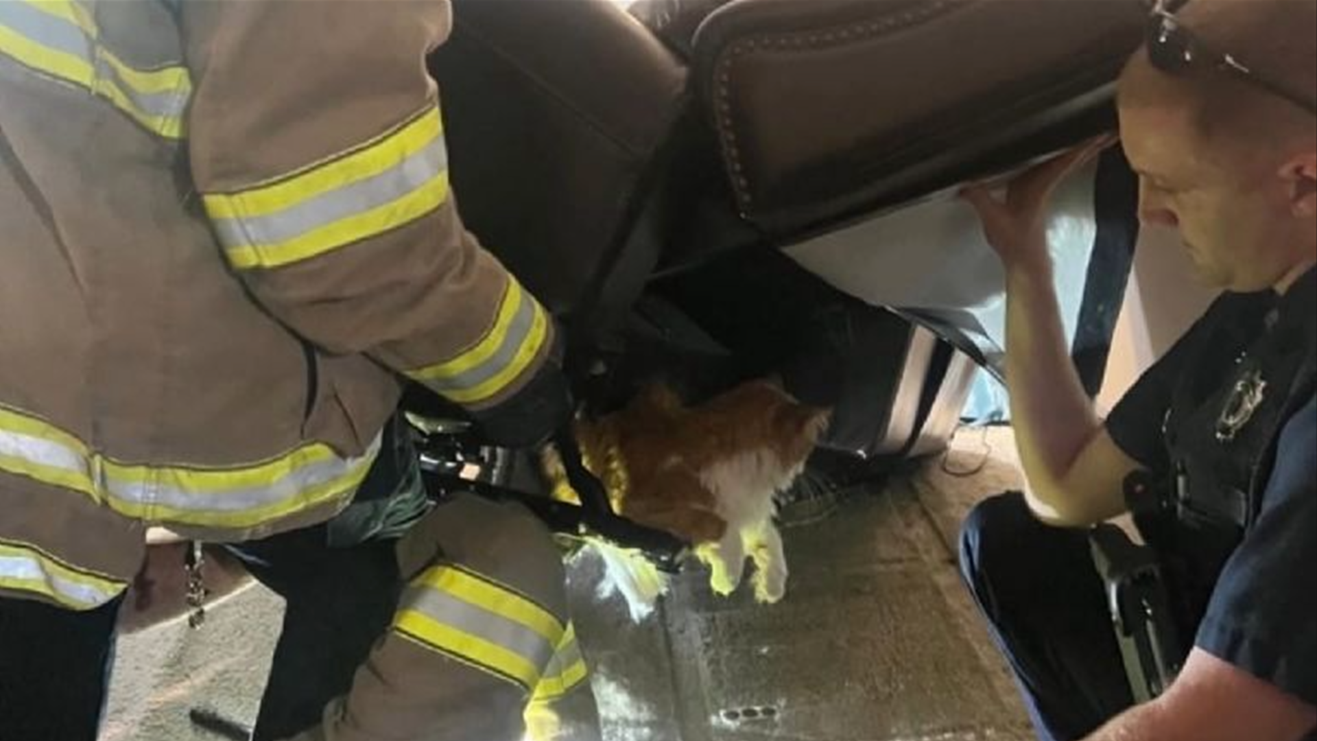 De acuerdo con los reportes, el dueño del felino escuchó maullidos de dolor provenientes del mueble, por lo que decidió comunicarse con los servicios de emergencia para solicitar apoyo.