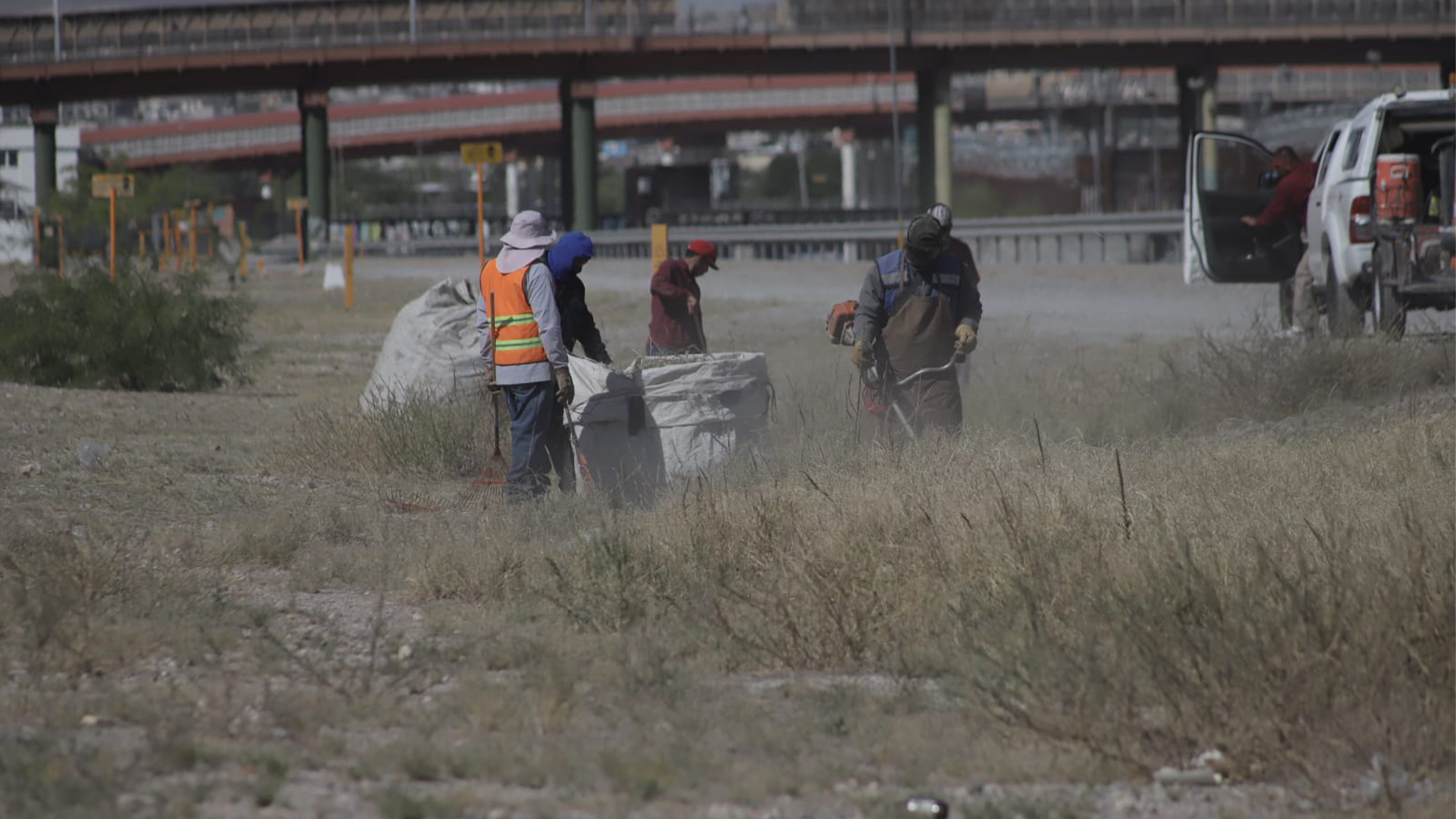 Por su parte, la Dirección de Parques y Jardines se enfocó en el mantenimiento del camellón central, realizando trabajos como retiro de tierra de arrastre, corte de maleza, limpieza de residuos y poda formativa del arbolado, todo con miras a preparar el área para las celebraciones de Pascua en El Chamizal.