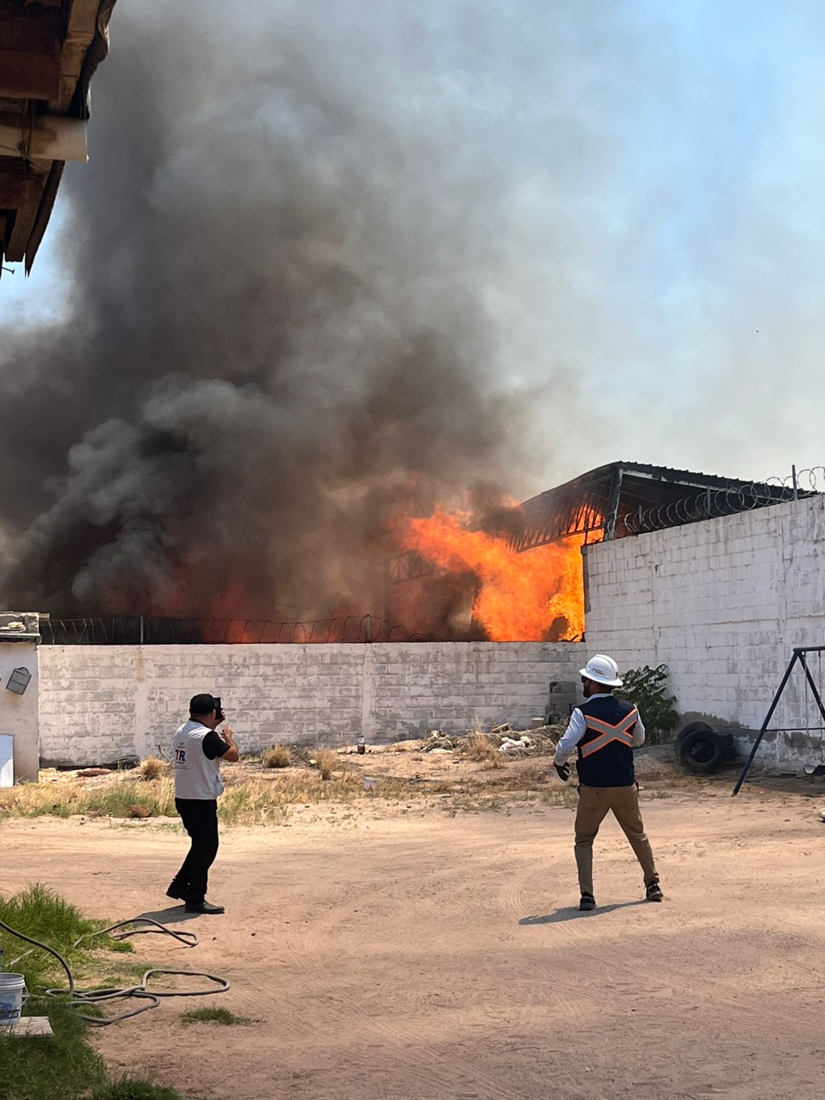 Ciudad Juárez.– Un incendio registrado la tarde de este viernes en la colonia El Granjero generó una amplia movilización de cuerpos de emergencia, luego de que una bodega ubicada en el cruce de las calles Sandía y Melón fuera consumida por las llamas.