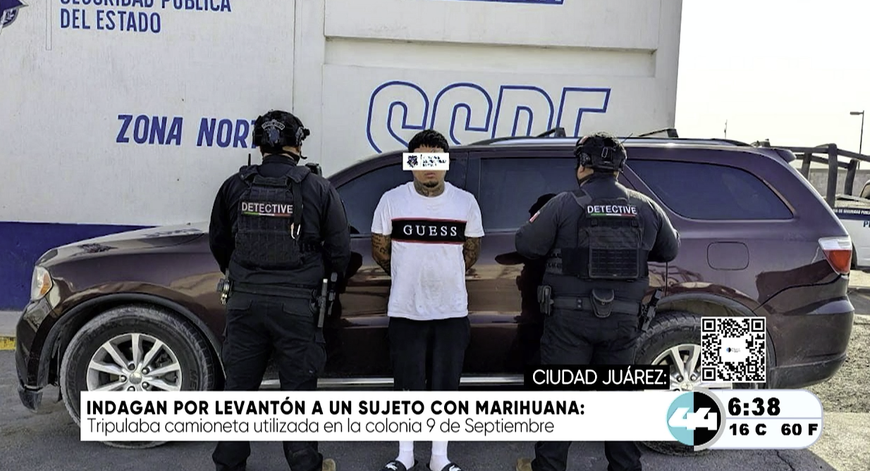 Ciudad Juarez, Chih.- Elementos estatales realizaron la detención de un hombre identificado como Ulises M. A., de 27 años, en la colonia Fronteriza, tras ubicar un vehículo relacionado con hechos delictivos previamente reportados mediante labores de inteligencia. La investigación vincula al detenido con un evento violento ocurrido en la colonia 9 de Septiembre, donde hombres armados irrumpieron en un domicilio, realizaron detonaciones de arma de fuego y privaron de la libertad a un hombre antes de darse a la fuga. Durante la intervención y tras una inspección preventiva al vehículo ubicado, las autoridades localizaron 10 bolsas de plástico con marihuana. Ante estas situaciones, el sujeto fue puesto a disposición de la Fiscalía General del Estado para ser procesado por delitos contra la salud y por su probable participación en el delito de privación de la libertad.