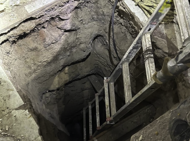 Añadió que tras ingresar al lugar, localizaron una excavación rústica que tenía una profundidad de 4,5 metros y una longitud de 79 metros, “con dirección hacia la frontera y sin salida habilitada”.