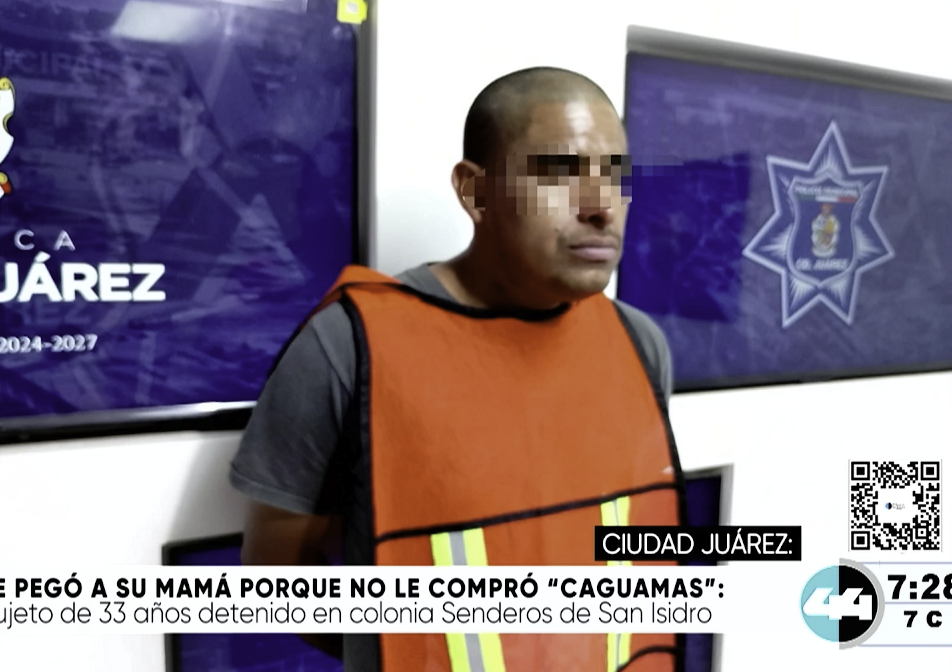 Ciudad Juarez, Chih.- Agentes de la Policía Municipal detuvieron a un hombre identificado como David Humberto, de 33 años, tras ser acusado de agredir física y verbalmente a su madre en la colonia Senderos de San Isidro. El arresto se llevó a cabo en una vivienda ubicada en el cruce de las calles Senderos de Alcalá y Senderos de Valencia. De acuerdo con los primeros informes, el conflicto inició dentro del domicilio cuando el ahora detenido le exigió dinero a su progenitora para comprar cervezas; ante la negativa de la mujer, el sujeto reaccionó de manera violenta, procediendo a la agresión. Tras el reporte, el hombre fue trasladado a la estación de policía correspondiente, donde quedó a disposición de las autoridades bajo el cargo de violencia familiar.