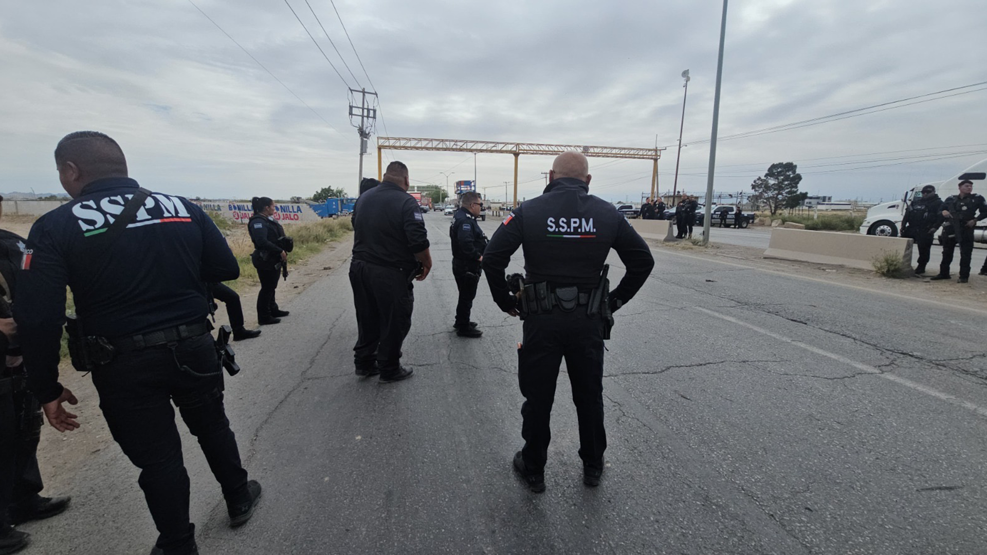Ciudad Juárez, Chih.- El secretario de Seguridad Pública Municipal, César Omar Muñoz Morales, acudió a la glorieta del kilómetro 20 sobre la carretera Panamericana, en Ciudad Juárez, para atender una manifestación de transportistas que mantenían bloqueados los accesos de entrada y salida de la ciudad.
