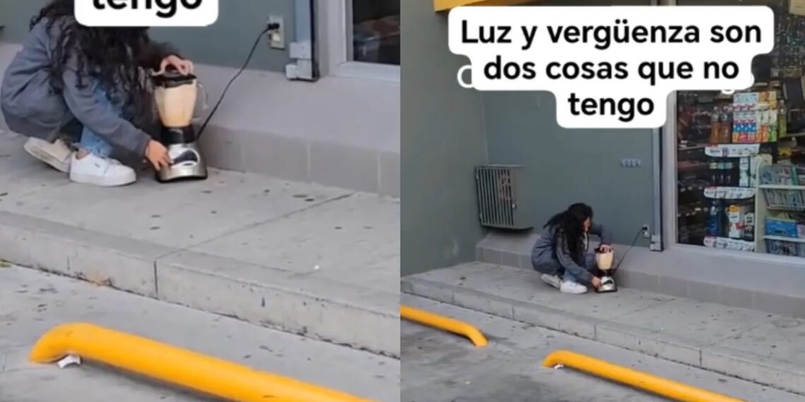 Ante la imposibilidad de utilizar su licuadora en casa para preparar su comida, decidió llevar su electrodoméstico a una tienda Oxxo cercana y conectarlo a una toma de corriente ubicada en el exterior del establecimiento.