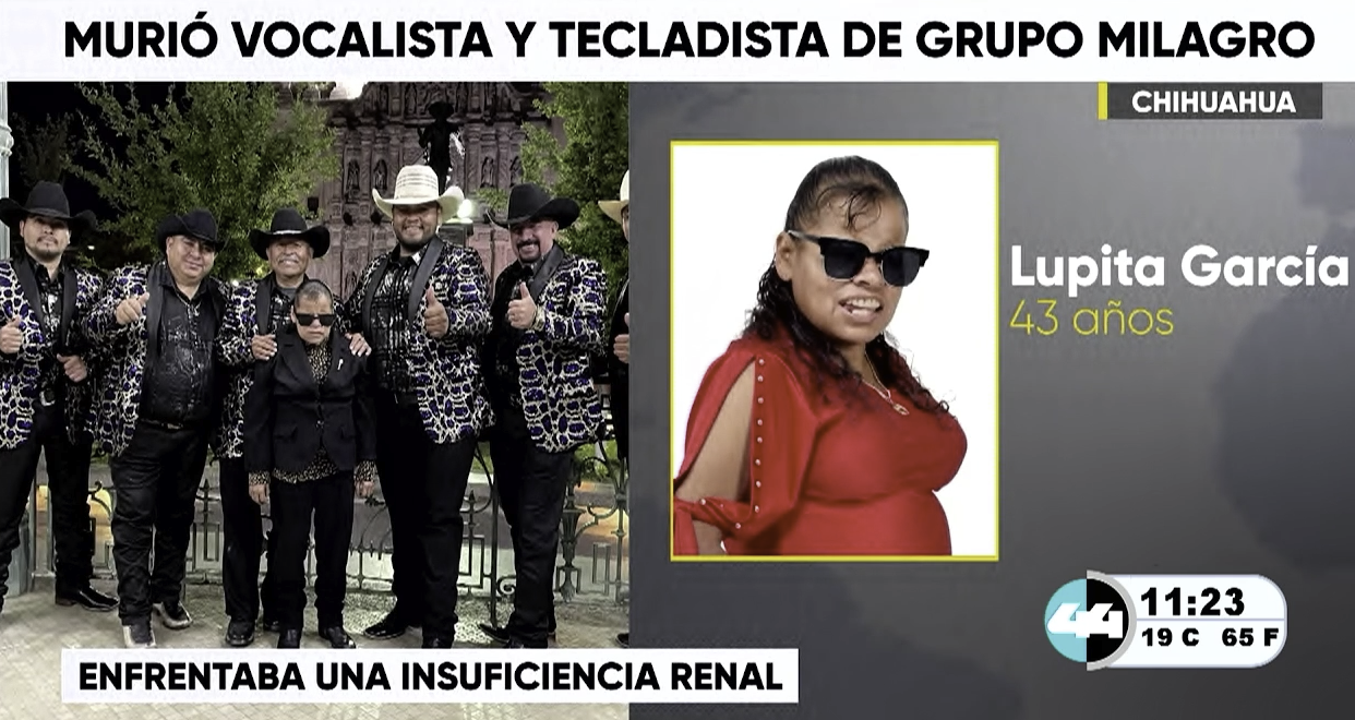 CHIHUAHUA. – El ambiente musical en el estado se encuentra de luto tras la confirmación del sensible fallecimiento de una de las figuras más queridas de la escena local. Lupita García, quien se desempeñaba como vocalista y tecladista del reconocido Grupo Milagro, perdió la vida el pasado miércoles a la edad de 43 años.