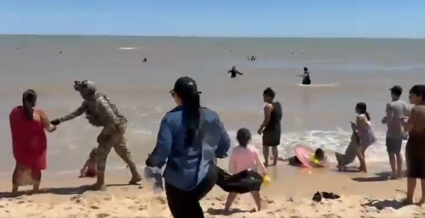 El acto fue reconocido por el gobierno municipal, que destacó la rápida intervención del marino, quien, tras completar el rescate, se mostró visiblemente agotado al arrodillarse en la arena.