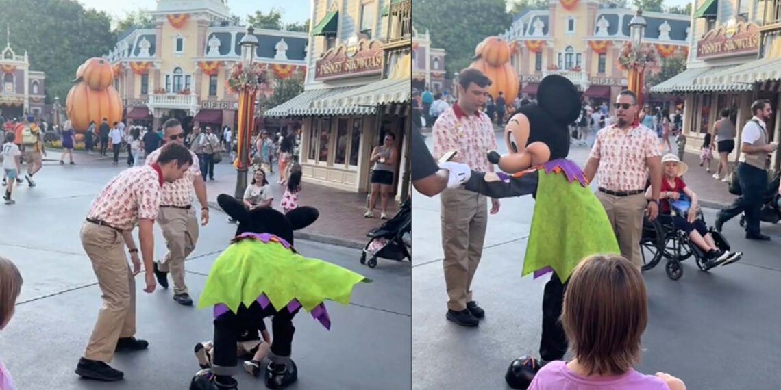 El incidente ocurrió cuando el niño, visiblemente emocionado, corrió hacia Mickey Mouse pero terminó chocando con el disfraz y cayendo al suelo. Mientras los empleados del parque se apresuraban a asistirlo y comprobar que no estuviera herido, el padre del menor optó por sacar su teléfono y grabar la escena en lugar de ayudar a su hijo. Este comportamiento no pasó desapercibido para Mickey Mouse, quien reaccionó de una manera que sorprendió a muchos presentes.