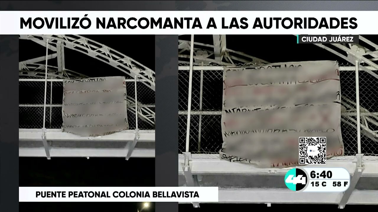 Ciudad Juarez, Chih.- Una intensa movilización de autoridades estatales y municipales se registró en la zona de la colonia Bellavista tras el reporte de una manta colocada en un puente peatonal sobre el Viaducto México 68 (anteriormente conocido como Viaducto Gustavo Díaz Ordaz). El mensaje, escrito de manera muy precisa, señalaba a un hombre identificado como Jonathan Guevara, alias “El Pantera”. En la cartulina se le atribuyen delitos de alto impacto y se le señala específicamente como el presunto encargado de un túnel transfronterizo que fue localizado recientemente en las inmediaciones de la Plaza de la Mexicanidad. Agentes de la policía estatal retiraron la manta para su análisis, aunque hasta el momento se desconoce quiénes la colocaron y la veracidad de los datos presentados en el mensaje. No se reportaron detenciones relacionadas con este incidente durante el operativo.