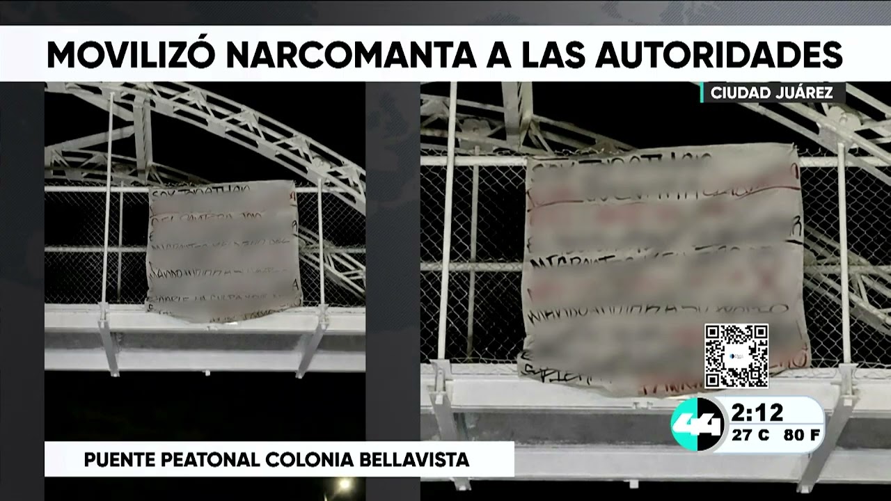 Ciudad Juárez, Chih.- Durante la madrugada de este jueves, el hallazgo de una “narcomanta” en un puente peatonal del viaducto generó una movilización de las autoridades en la colonia Bellavista. La manta fue colocada en un cruce peatonal sobre el viaducto Díaz Ordaz (también conocido como Mártires del 68). El mensaje consiste en un señalamiento directo contra un presunto delincuente apodado “El Pantera”.