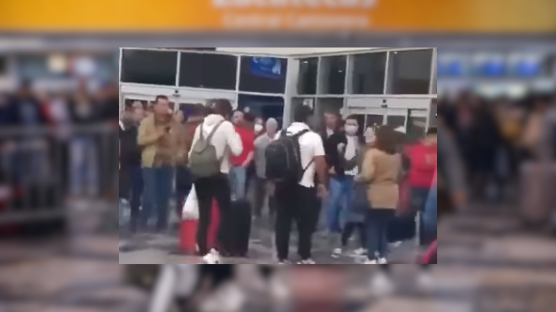 De acuerdo con las imágenes, la esposa llegó al lugar y encaró al hombre con reclamos directos, lo que derivó en una discusión que fue presenciada por varias personas que se encontraban en la terminal.