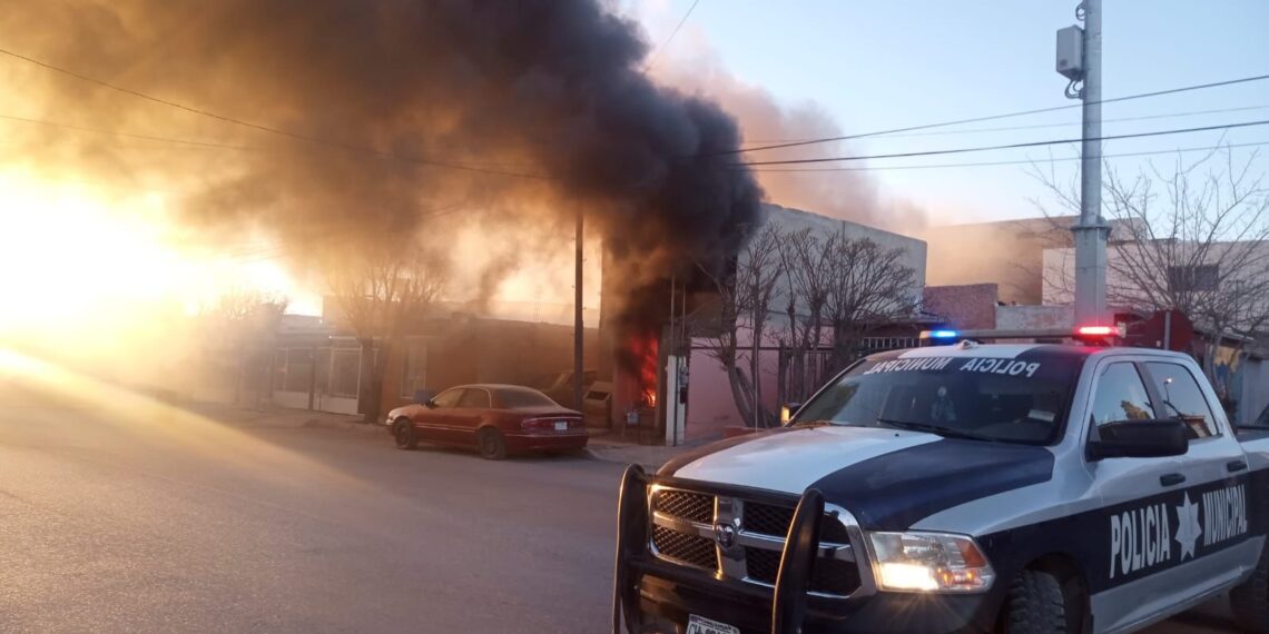 Municipal durante un recorrido de vigilancia a bordo de la unidad 837, se percataron de un incendio en una vivienda ubicada en el cruce de las calles Fortín de la Soledad y Miacatlán, en la colonia Morelos III.