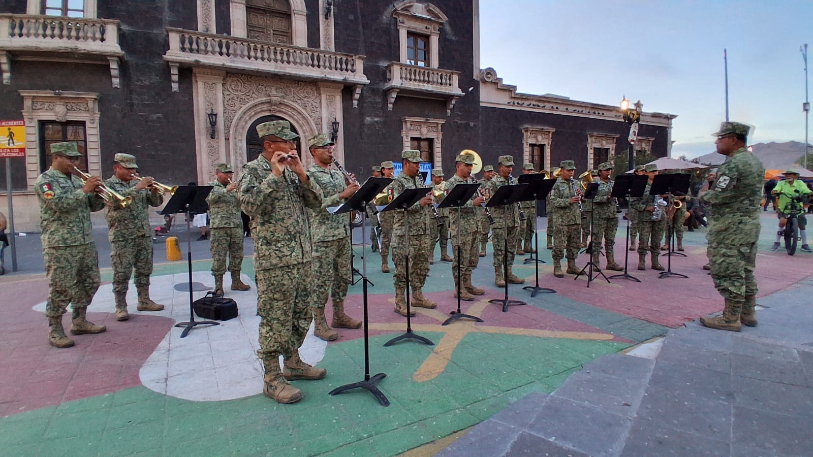 Ciudad Juárez, Chihuahua.– Con el objetivo de fortalecer el acercamiento social con la comunidad, la Banda de Música de la XI Región Militar ofreció un concierto gratuito detrás de la Catedral, donde interpretaron diversos temas, destacando canciones del icónico artista juarense Juan Gabriel.