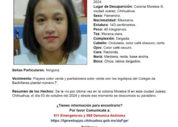 Ciudad Juárez.- Autoridades y familia buscan a una jovencita de 16 años quíen desapareció el pasado 3 de octubre en ...