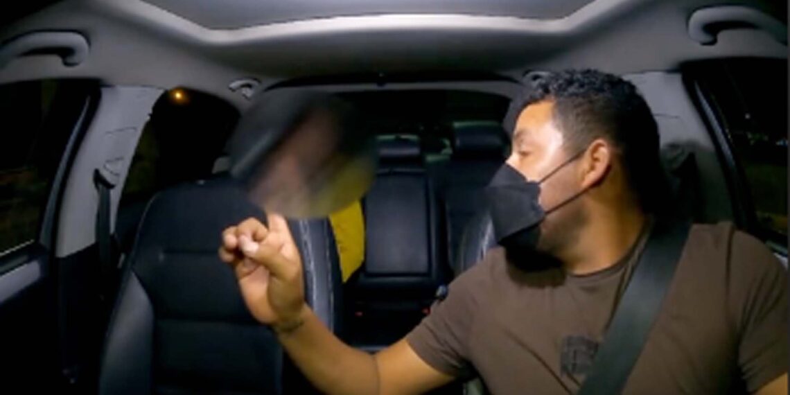 La pasajera, negándose a bajar del auto, le responde: “No me voy a bajar. No me puedes bajar aquí. Aquí ni siquiera hay nada”.