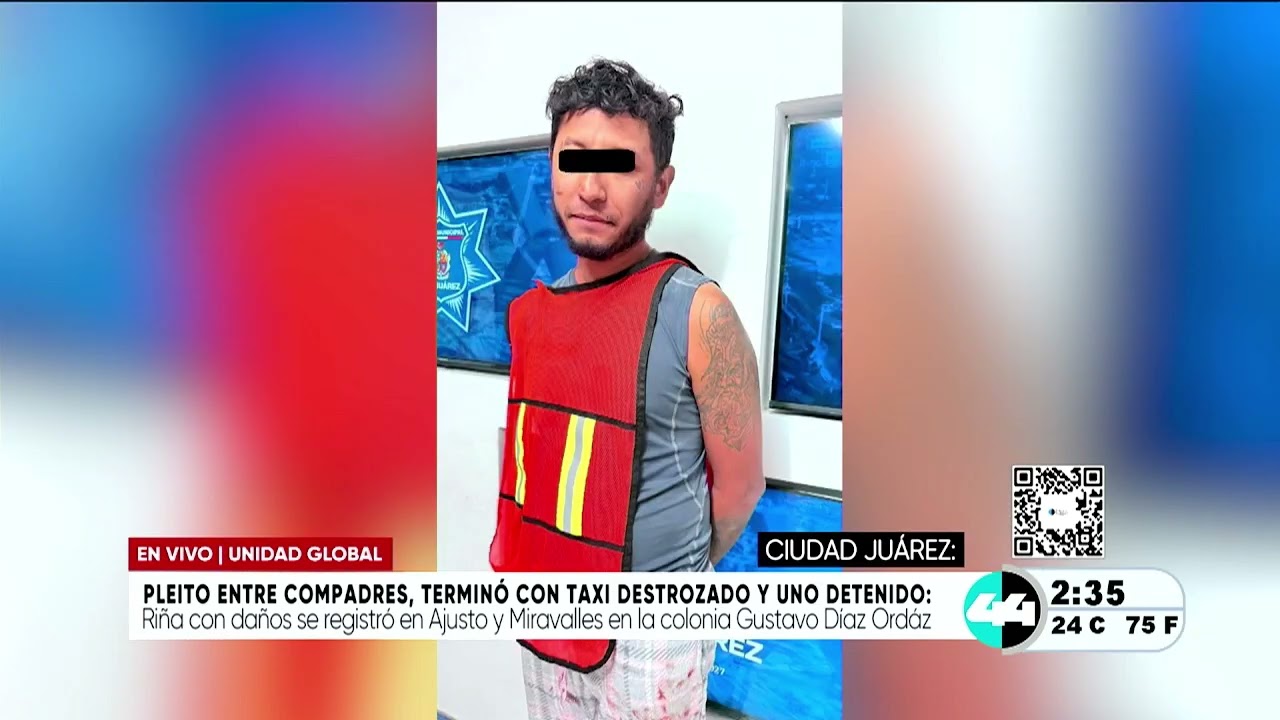 Pleito entre compadres, terminó con taxi destrozado y uno detenido.