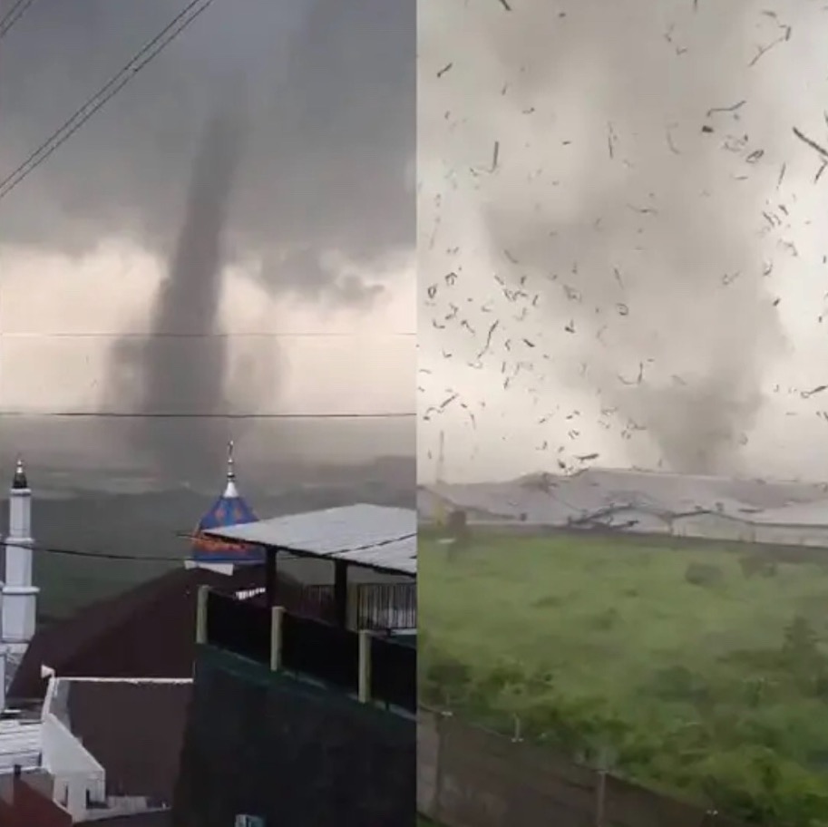Indonesia.-En la tarde de ayer, un poderoso tornado azotó el distrito de Cimanggung en la provincia de Java Occidental, Indonesia, dejando a su paso una estela de destrucción. Los videos de fenómeno natural se volvieron virales al mostrar la devastación que causó el tornado.