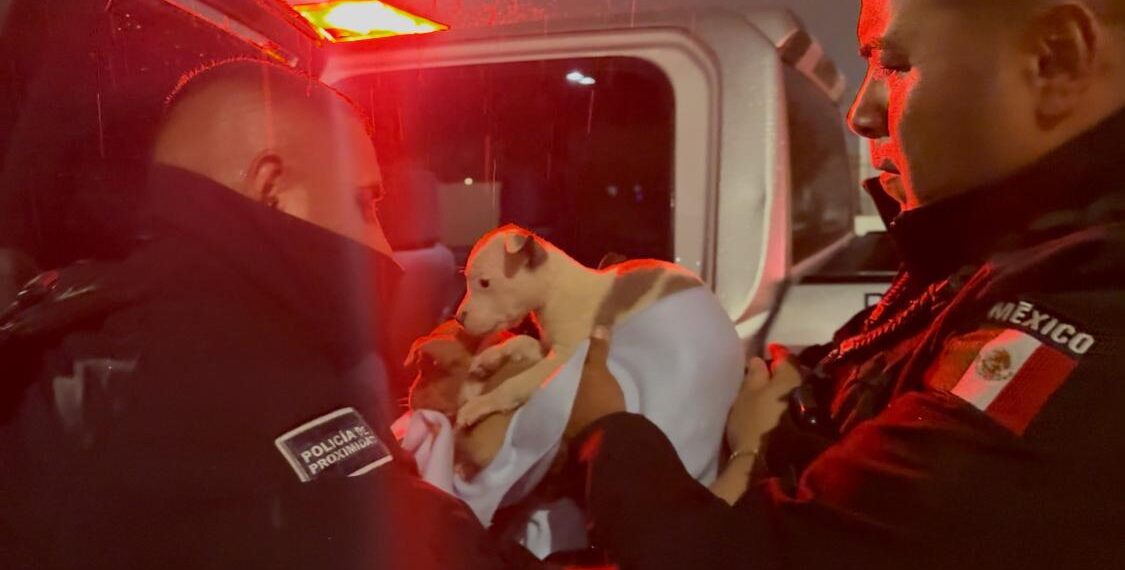 Policías Municipales sorprenden a un sujeto abandonando cuatro cachorros en un lote baldío