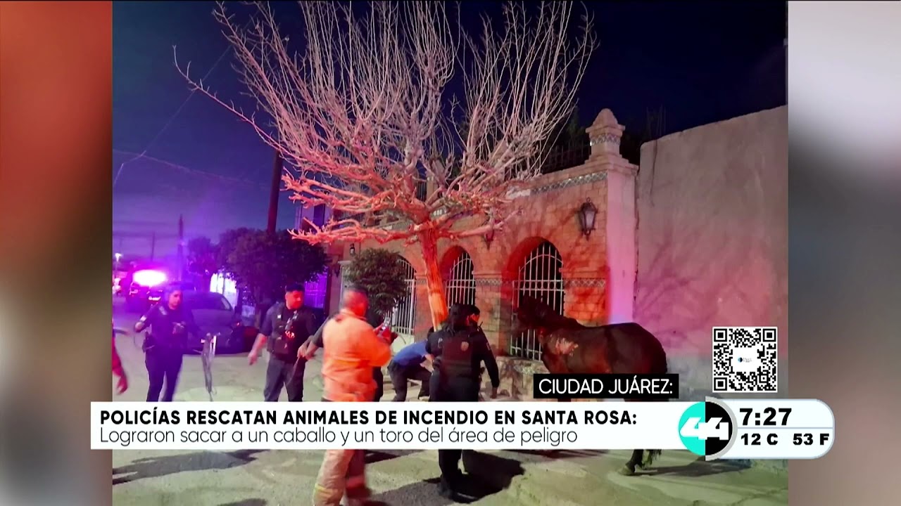 Ciudad Juarez, Chihuahua.- Elementos de la Secretaría de Seguridad Pública Municipal realizaron una intervención oportuna durante un incendio de grandes proporciones registrado en un predio de la colonia Santa Rosa. Los agentes actuaron con prontitud para salvaguardar la vida de personas y animales que se encontraban en la zona de peligro, logrando rescatar específicamente a un caballo de color negro que ya presentaba quemaduras, así como a un toro.