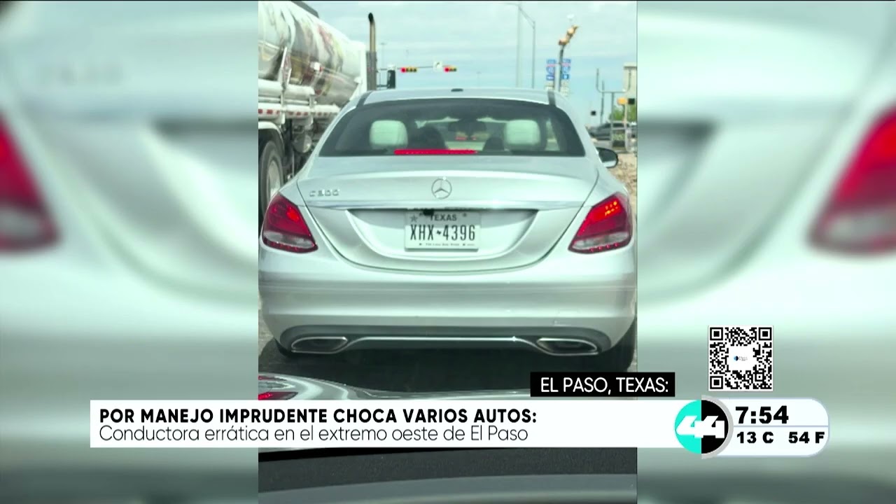 Ciudad Juarez, Chihuahua.- En un incidente ocurrido en el extremo oeste de la vecina ciudad de El Paso, Texas, una conductora de un sedán Mercedes-Benz protagonizó una serie de maniobras erráticas y peligrosas. El suceso se originó por el manejo imprudente de la guiadora, quien impactó a varios vehículos que se encontraban en el sector, generando una situación de alto riesgo para los demás automovilistas.