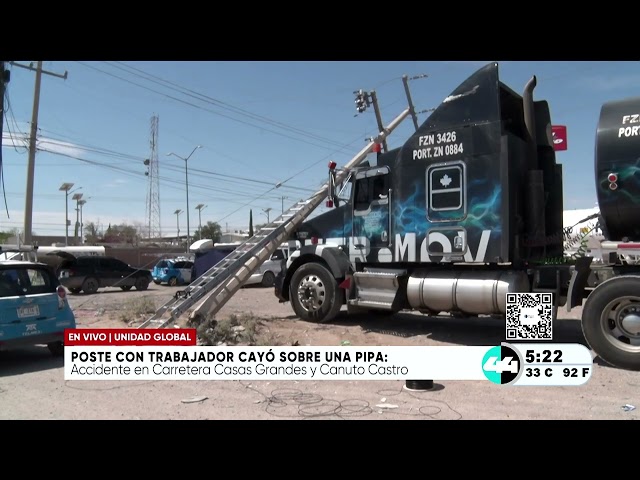 Poste con trabajador cayó sobre una pipa