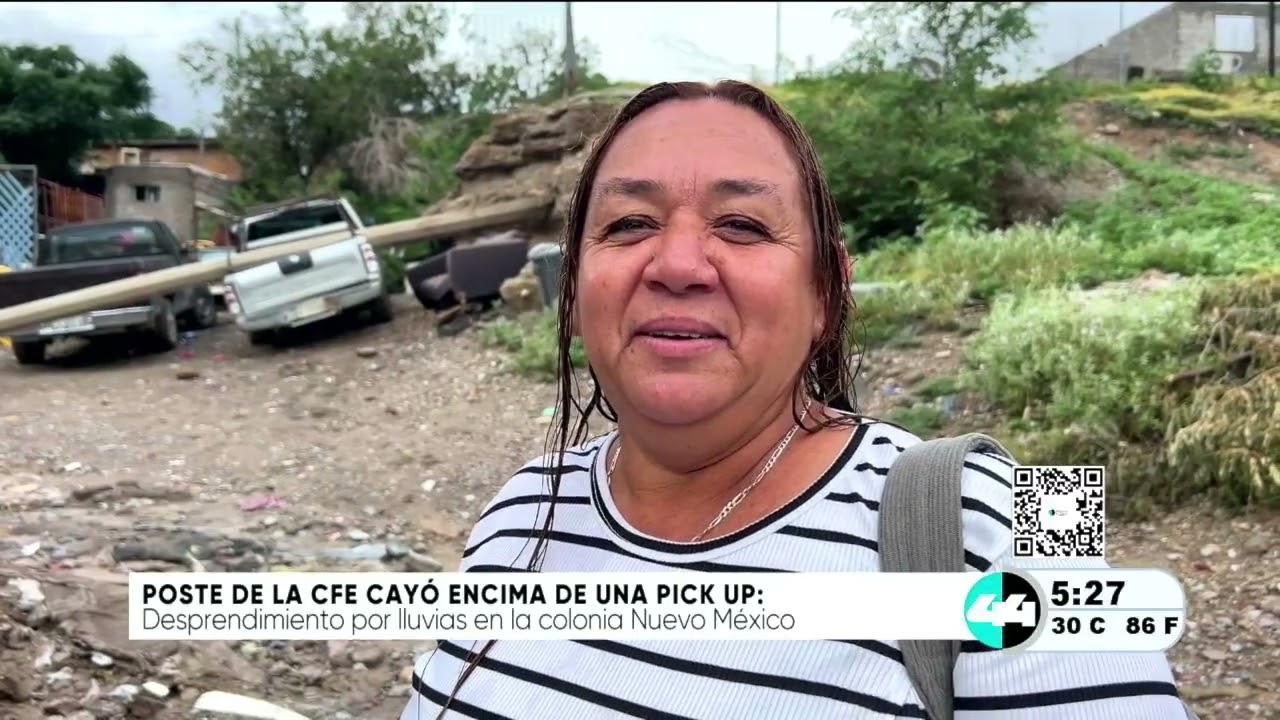 Poste de la CFE cayó encima de una Pick up