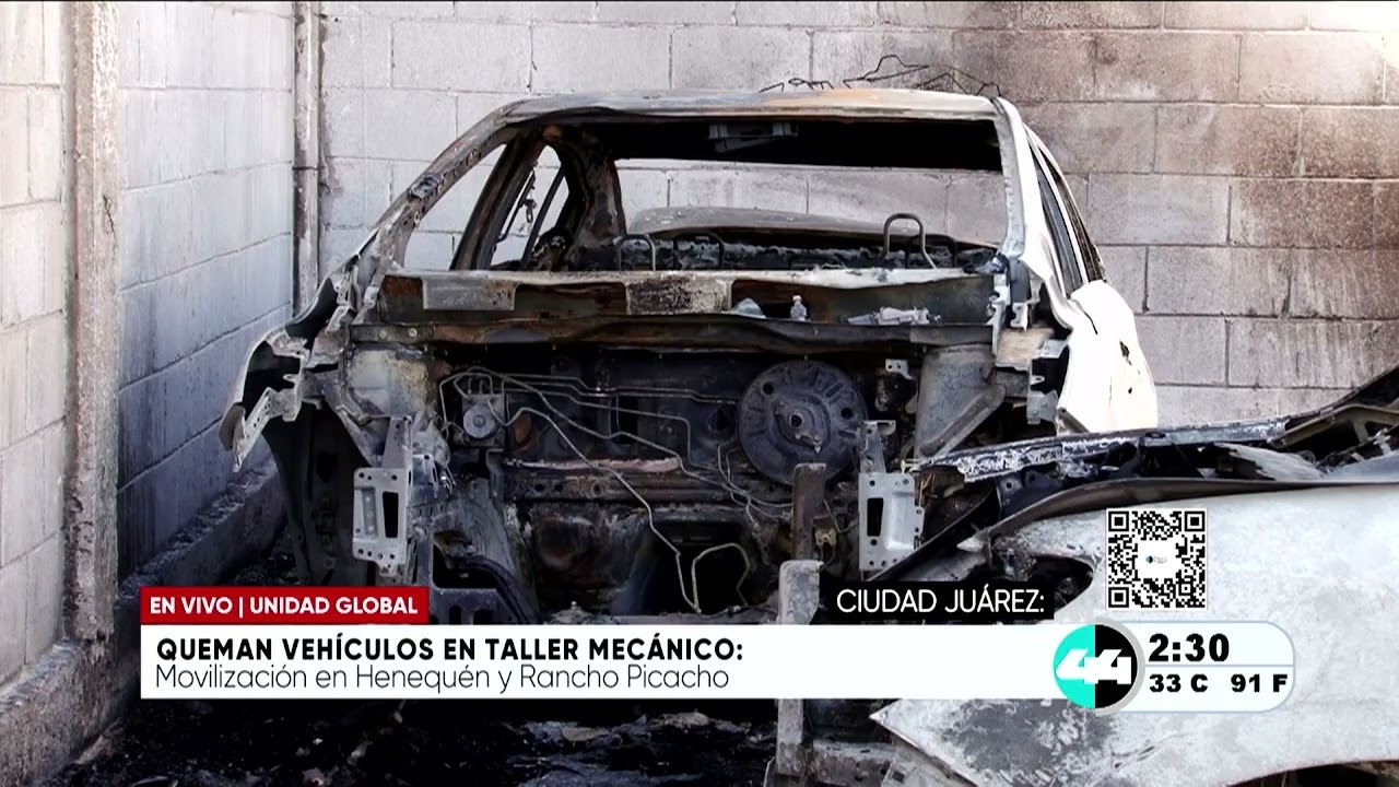 Queman vehículos en taller mecánico