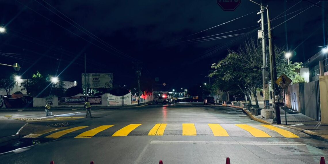 Ciudad Juárez, Chih.– Con el objetivo de mejorar la infraestructura vial sin interferir con el flujo vehicular diurno, la Coordinación General de Seguridad Vial, a través de su área de Control de Tráfico, continúa realizando labores nocturnas en distintos sectores de Ciudad Juárez.