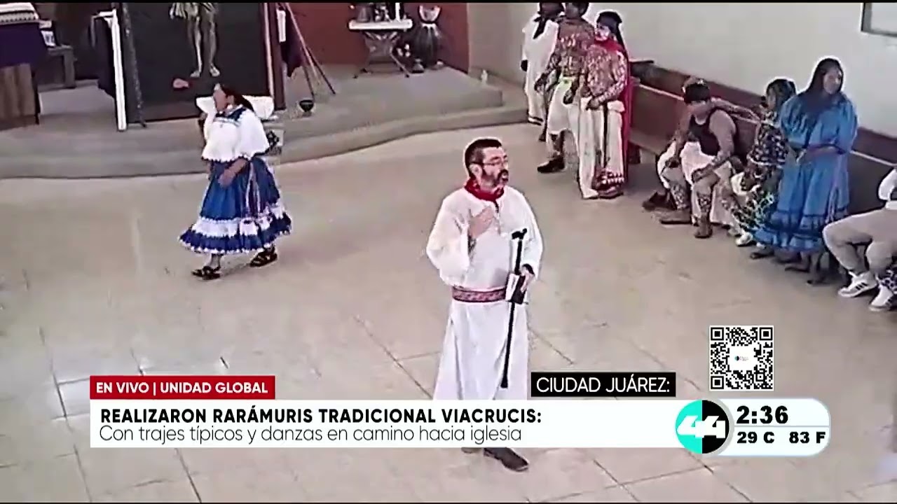 Ciudad Juárez, Chih.- La comunidad Rarámuri de Ciudad Juárez llevó a cabo su tradicional representación del Viacrucis en la colonia Tarahumara. Como parte de su tradición, los habitantes de la colonia danzan durante tres días antes del Viernes Santo como una forma de veneración dirigida al cielo. El Viacrucis culmina con la crucifixión, donde la comunidad participa utilizando su vestimenta tradicional y siguiendo sus propios orígenes y creencias