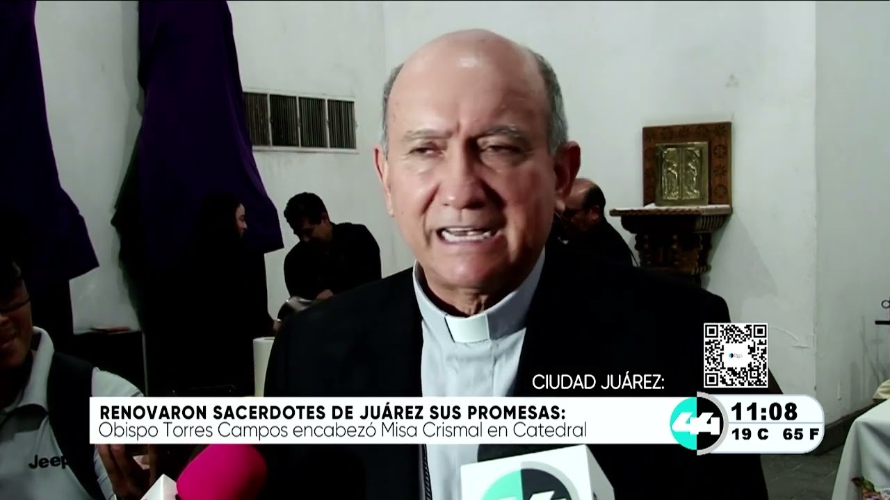Ciudad Juárez, Chihuahua .— En un acto de profunda fe y comunión eclesial, más de cien sacerdotes de la Diócesis de Ciudad Juárez se reunieron este Jueves Santo en la Catedral para celebrar la Misa Crismal. La ceremonia estuvo encabezada por el obispo José Guadalupe Torres Campos, quien dirigió la renovación de las promesas sacerdotales de aproximadamente 108 clérigos, todos ellos vestidos de blanco, simbolizando la unidad y el compromiso de su ministerio con la comunidad fronteriza.