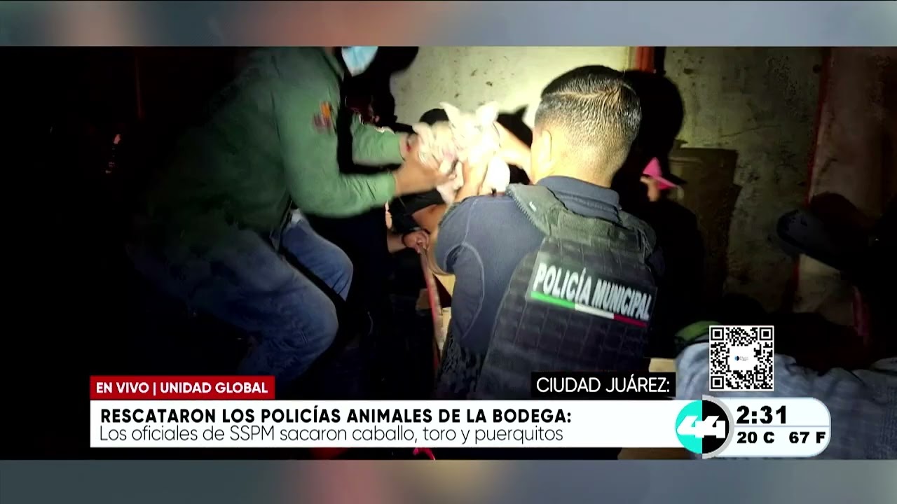 Ciudad Juárez, Chih.- Ante un incendio registrado en un predio, elementos de la Secretaría de Seguridad Pública Municipal y personal de Protección Animal (RAM) intervinieron para poner bajo resguardo a la mayor cantidad de animales posible. Las autoridades lograron sacar de entre las llamas a un caballo, un toro y varios cerdos. Lamentablemente, se informó que otros animales quedaron atrapados en el interior y murieron quemados, mientras que algunos más lograron escapar por la parte posterior del predio.