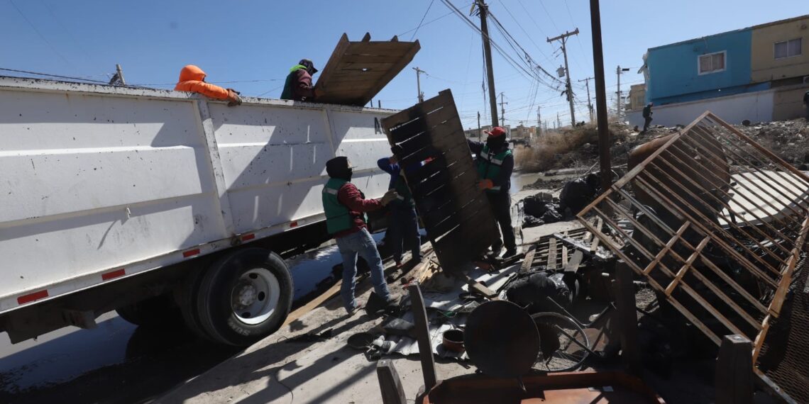Ciudad Juárez, Chih.- Un total de 565 llantas, aproximadamente 22 toneladas de basura y 45 toneladas de escombro y tierra de arrastre fueron retiradas durante una jornada intensiva de limpieza en el fraccionamiento Villa Residencial del Real.