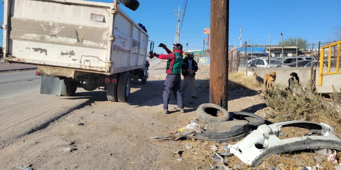 Ciudad Juárez, Chih. — Más de 300 llantas, en su mayoría correspondientes a unidades de tractocamión, fueron retiradas de los principales accesos a la ciudad durante una jornada de limpieza realizada este lunes 2 de febrero de 2026 por personal de la Dirección de Limpia, informó el titular de la dependencia, Gibran Solís Kanahan.