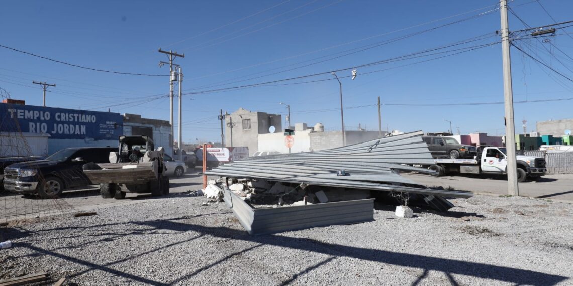 Ciudad Juárez, Chih.— En el marco del Operativo Permanente de Reordenamiento Urbano, el Gobierno Municipal llevó a cabo este miércoles 11 de febrero de 2026 el retiro de tres establecimientos que operaban de manera irregular en un espacio público ubicado entre la calle Fatsia y el bulevar Zaragoza.