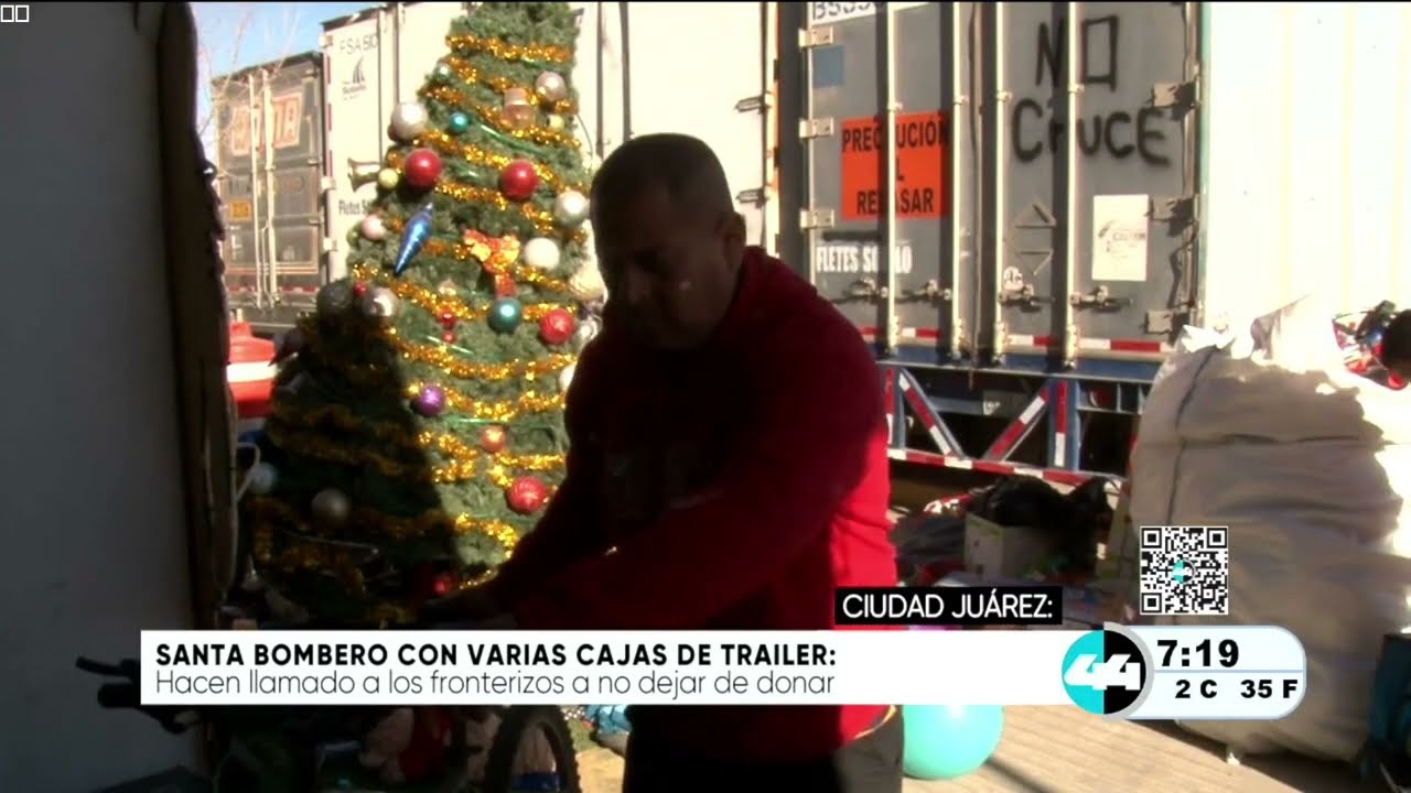 Santa Bombero con varias cajas de tráiler