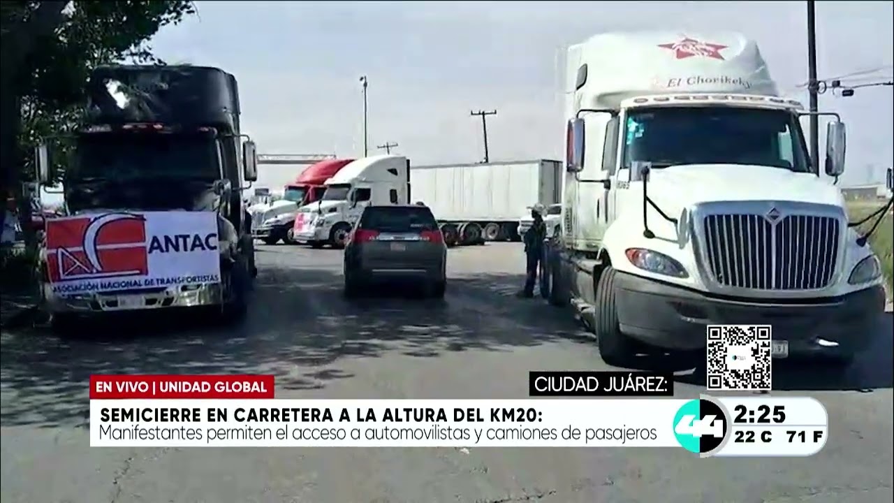 Ciudad Juárez, Chih.- Transportistas de Ciudad Juárez y del estado de Chihuahua se sumaron a un paro nacional para exigir mayor seguridad en las autopistas del país ante los constantes asaltos y asesinatos de conductores. Las acciones locales incluyeron el posicionamiento de vehículos de carga para obstruir parcialmente la circulación, permitiendo el paso de forma limitada en puntos estratégicos para visibilizar sus demandas, que también incluyen un alto al aumento del precio del diésel y el costo de los peajes.