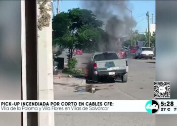 Pick-up incendia por corto en cables CFE