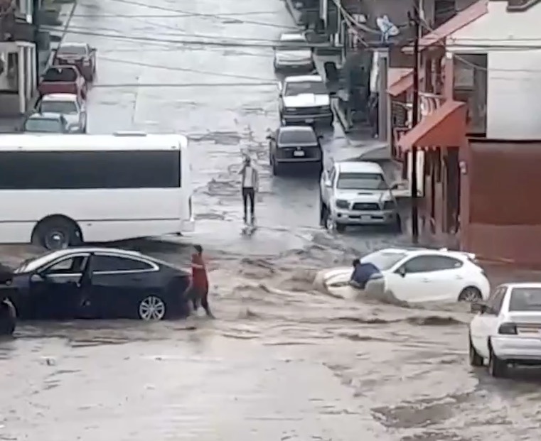 Fuertes corrientes arrastraron vehículos en calles