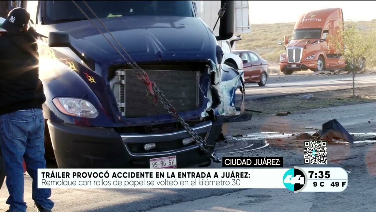 Remolque con rollos de papel se volteo en el kilómetro 30