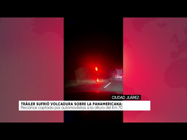 Ciudad Juárez, Chihuahua .— Una volcadura de un tráiler se registró este jueves en la carretera Panamericana, específicamente a la altura del kilómetro 70, en el tramo que conduce hacia Ciudad Juárez. Según los informes de conductores que pasaban por la zona, la pesada unidad terminó recostada sobre su costado derecho, quedando fuera de la cinta asfáltica en un sector donde la visibilidad era limitada.