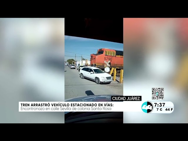 Tren arrastró vehículo estacionado