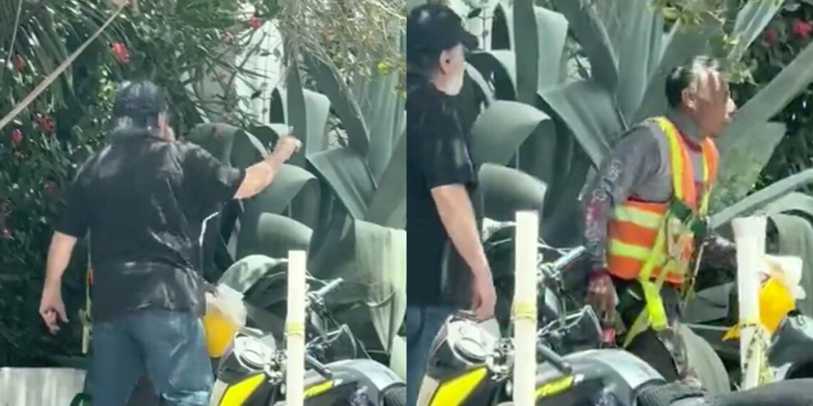 Gringo corre a trabajador que come porque le molesta que se siente en una jardinera cercana a su casa.