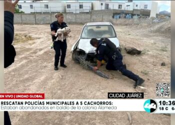 Rescatan policías municipales a 5 cachorros