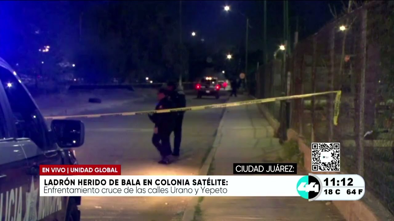 Ciudad Juárez, Chihuahua.- Una intensa movilización policial se registró la noche de este miércoles en las inmediaciones de la colonia Satélite, luego de que un presunto delincuente fuera herido de bala por agentes municipales tras un intento de asalto. Los hechos ocurrieron específicamente en el cruce de las calles Urano y Yepeto, zona que fue rápidamente acordonada por las autoridades para iniciar con las investigaciones pertinentes.