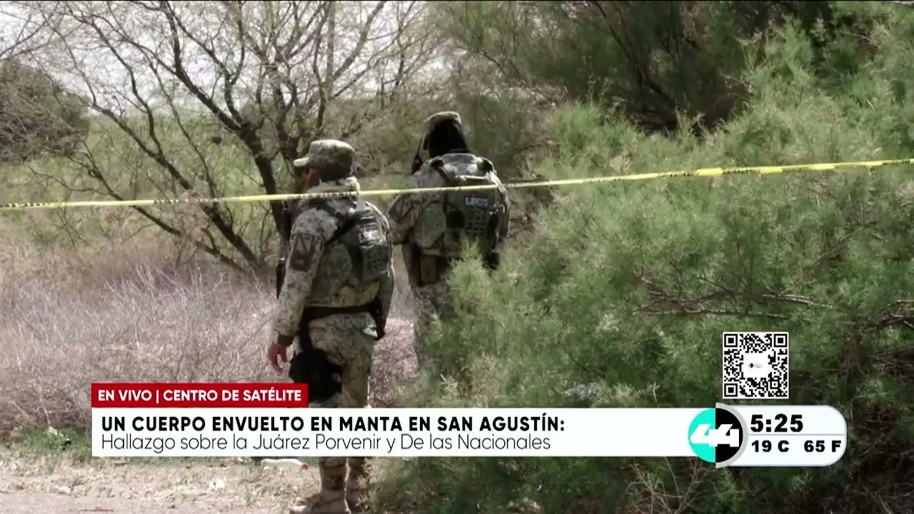 En el poblado de San Agustín, se localizó el cuerpo sin vida de una persona envuelto en una manta de color oscuro. El hallazgo tuvo lugar en una brecha de terracería situada estratégicamente entre la carretera Juárez-Porvenir y la Avenida de las Naciones. Esta situación fue atendida inicialmente por elementos de la Policía Municipal, quienes confirmaron la presencia de la víctima en una zona despoblada.
