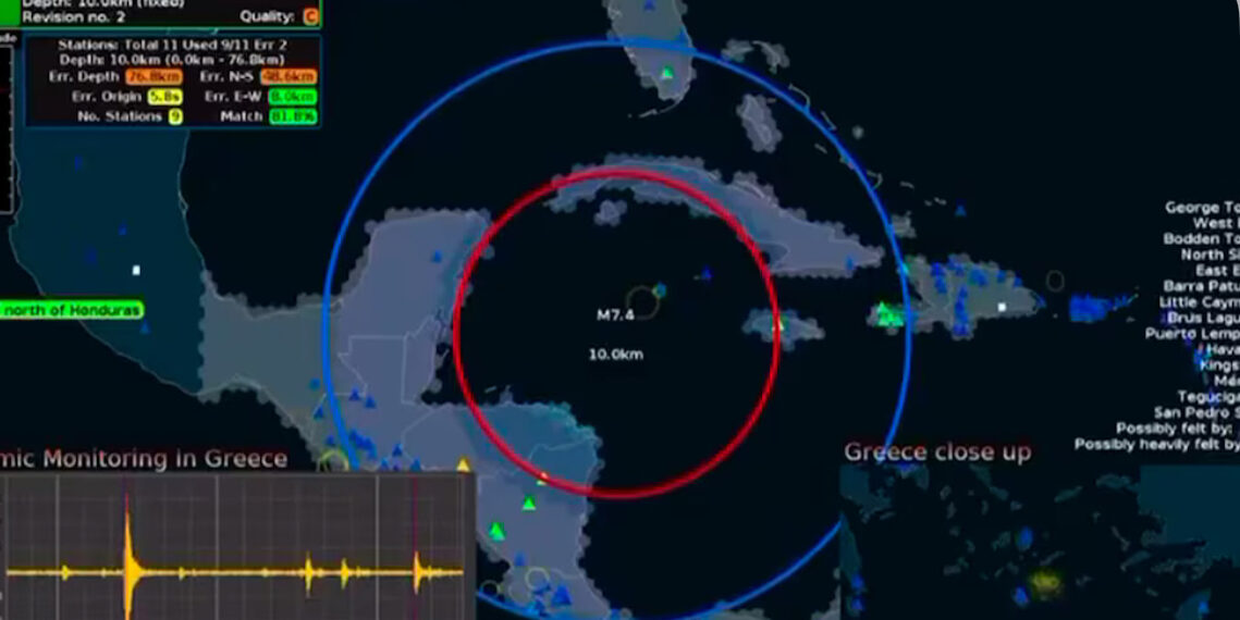 Un sismo de magnitud 7.6 con epicentro entre las Islas Caimán, Jamaica y Honduras sacudió el mar Caribe este sábado por la tarde y dejó en alerta por tsunami a varias islas de la región, informó el Servicio Geológico de Estados Unidos.