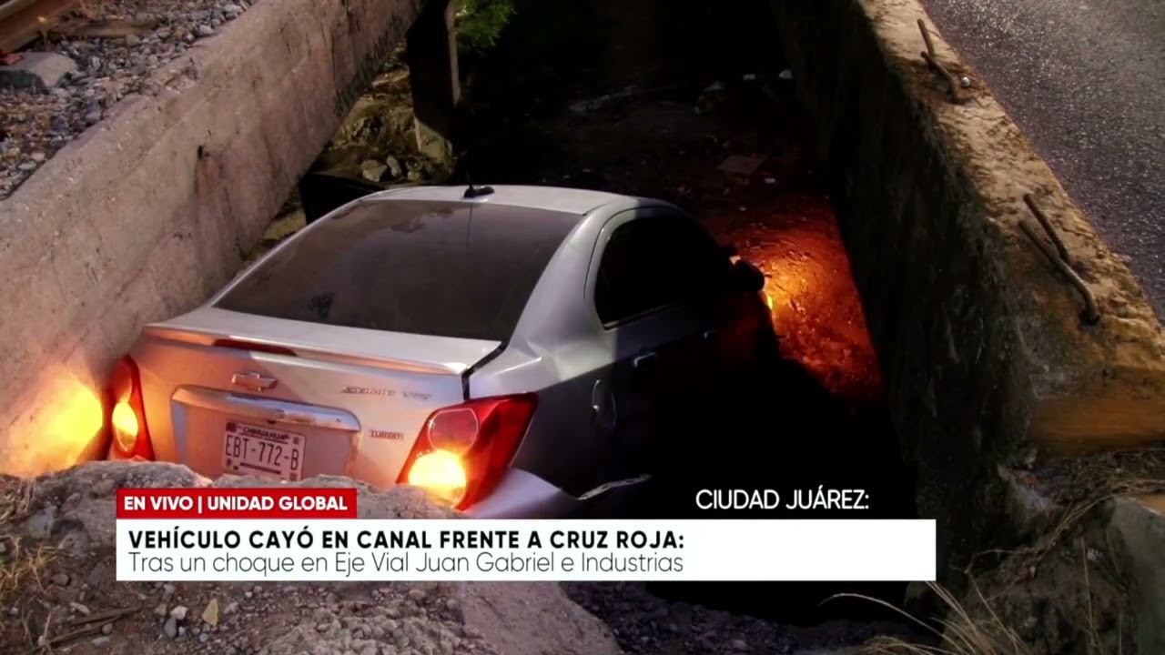 Vehículo cayó en canal frente a cruz roja